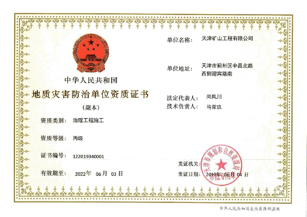 地質(zhì)災(zāi)害治理工程施工資質(zhì)證書(shū)